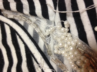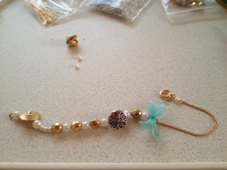 パールとリボンのデリケートブレスレッド アクセサリー 2014年05月05日 リメイクパーツでアクセサリーを作りました^^ こういうパールのものってツボです。丸くて白くて見ていてきれいで。こういうのを身に着けられるのって女子の特権・・・というか。とにかくなんだか上品で好きです。 で、もともとはこのパールたち、何だったかというと、このTシャツの胸のあたりについていた飾り。 このTシャツもハッキリ言ってすごくお気に入りでした。一枚で来ていて、気持ちがいい。 でも、パジャマ代わりに着るようになってから、選択するとビーズのほつれが目立つように。 これはもう直せないと思って、リメイクを決断。 自らビーズ部分を解きます。 そして、種類別に分けてみました。結構たくさんついてたのね、ビーズちゃんたち。 これを、思い思いにチェーンに通してみます。あーじゃない、こうじゃないってしながら。 真ん中のお花はボタン。レトロで好きです。 大好きな緑いろで飾ります。りぼん部分は、結び目がとれないように瞬間接着剤でしっかり取り付けて、乾かします。 完成!☆ T PR http://wonderfull.o-oi.net/accessaries/accessaries2パールとリボンのデリケートブレスレッド